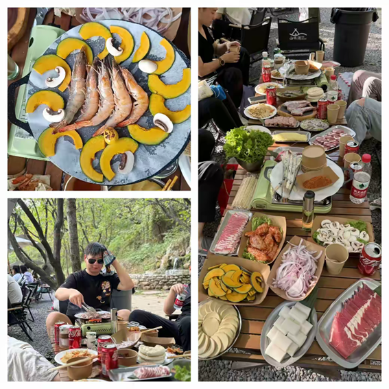 傍晚時(shí)分,我們進(jìn)行了韓式燒烤活動(dòng)。大家分工合作,有的負(fù)責(zé)鋪油紙,有的負(fù)責(zé)撒油,有的負(fù)責(zé)烤肉,還有的傻傻地看著肉流口水。在歡聲笑語中,一片片美味的烤肉出爐了。大家圍坐在火爐旁,品嘗著美味的烤肉,感受著這份難得的團(tuán)聚時(shí)光。